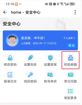 2、进入界面如下,点击“校验邮箱”去校验、绑定或解绑邮箱。