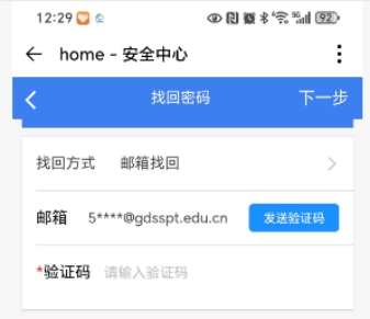 6、点击“发送验证码”通过绑定的邮箱获取验证码,并填写好后进入下一步。